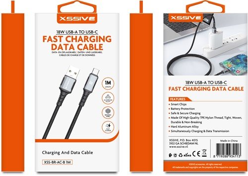 Câble tressé USB-A Vers USB-C Xssive 1M – Noir